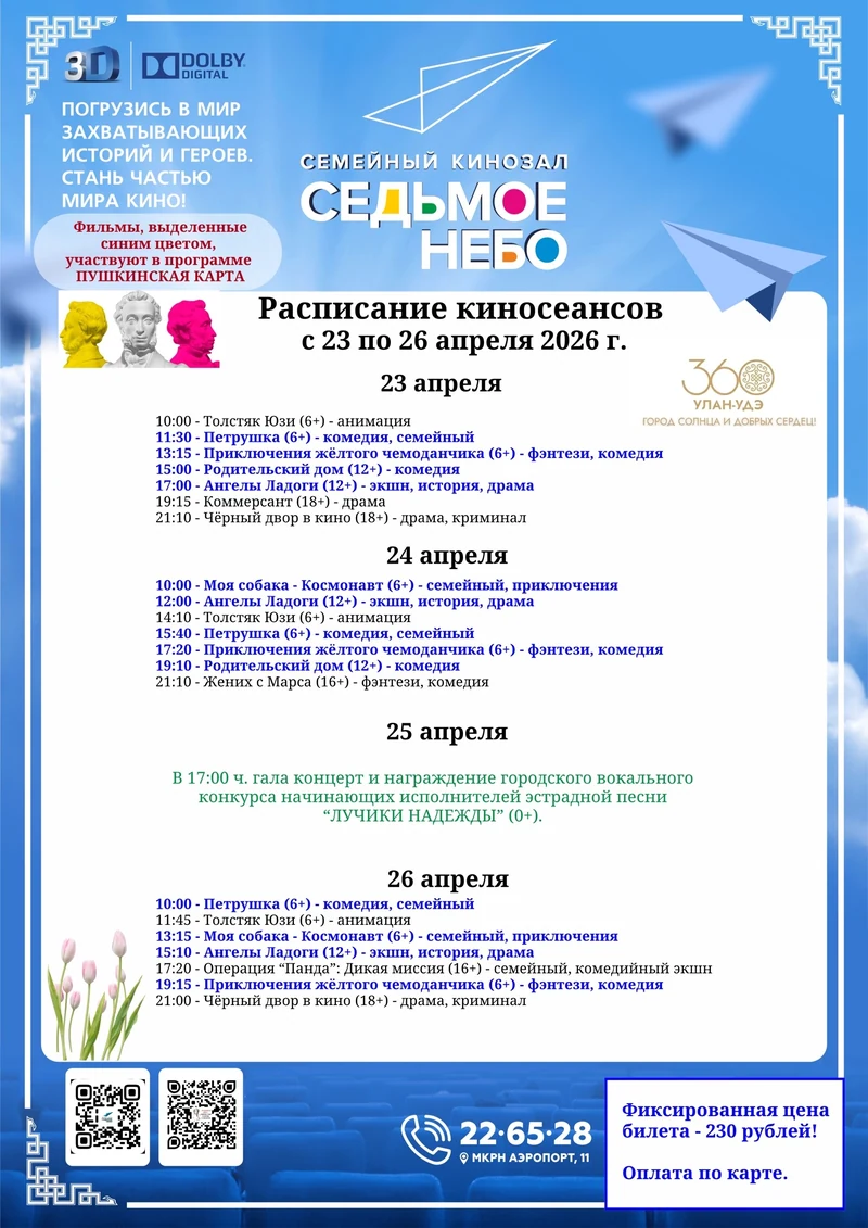 Расписание киносеансов на 23, 24 и 26 апреля 2026 года👆
