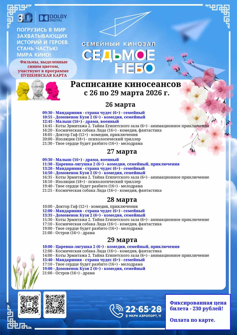 Расписание киносеансов с 26 по 29 марта 2026 год👆