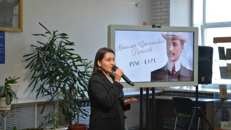 На литературном часе «Рыцарь серебряного века» Рената прочитала произведения Николая Гумилева, «Однообразные мелькают…» и «В пути»
